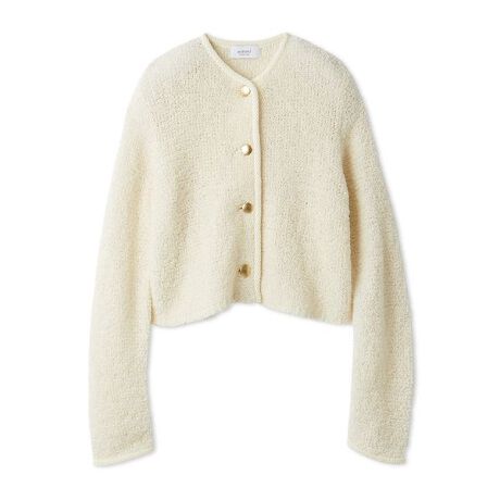 ウール昆の糸をループ編みにしてふんわりと仕上げた上品なニットカーディガン
