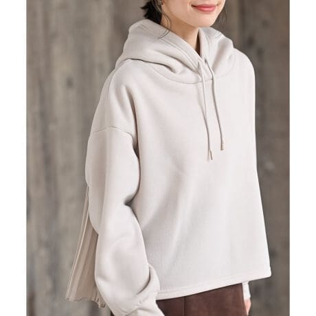 背中にシフォンプリーツをあしらったカジュアル感抑えめなパーカー。