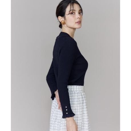 ■デザイン1枚ではもちろん、これからの季節はインナーとしても活躍するリブプルオーバー。衿と袖口にあしらった華奢なチビフリルと、袖口のパールがMaglieらしいアクセントを添えます。身体に張り付きすぎない程よいゆとりのあるシルエットで、暖かいインナーも重ねやすい仕様に。チクチクしない柔らかな編み地で、春先まで快適に着用いただける万能アイテムです。■素材シルクの様な光沢があり見た目や肌触りが良くテロンとした落ち感のある素材のレーヨンと、しわになりにくく強度のあるポリエステルと混紡した素材です。吸水速乾性に優れきれいな編み目で清涼感があり、ストレッチ性のある素材感なので長い期間着用していただける素材です。・水洗い可■サンプル撮影商品画像の商品はサンプルです。実際の商品とはサイズや色味、素材、デザイン等の仕様が若干変更になる場合がございます。■カラーについては、可能な限り実際の商品に近いカラーにて撮影をおこなっておりますが、照明の関係により実際の製品とは色味が違って見える場合があります。またパソコン・スマートフォンなどの環境により、若干製品と画像のカラーが異なる場合もございます。現物と画像のカラー差異については返品理由となりませんので、予めご了承ください。