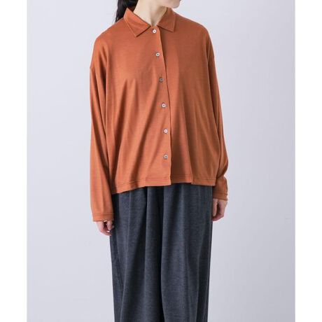 定番アイテムのシャツをカットソー素材でご用意しました。細番手のメリノウールを甘撚りにすることで斜行を極力少なくし、滑らかで柔らかい生地に仕上がっています。襟のあるデザインがどこか品の良さをまとっているトップスです。スカート/パンツ問わず日々のスタイリングに重宝。手洗いが可能なので気軽に着られるのも嬉しいポイント。