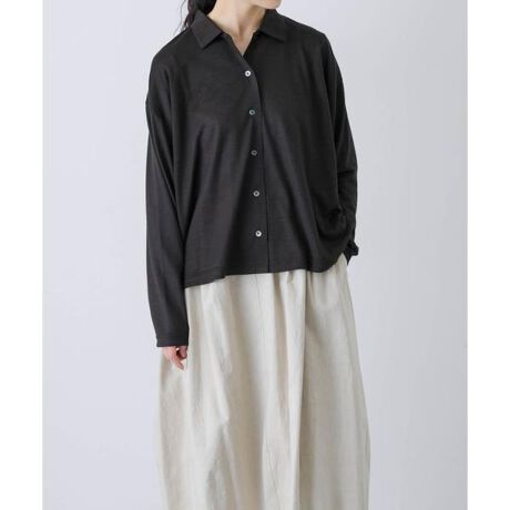 定番アイテムのシャツをカットソー素材でご用意しました。細番手のメリノウールを甘撚りにすることで斜行を極力少なくし、滑らかで柔らかい生地に仕上がっています。襟のあるデザインがどこか品の良さをまとっているトップスです。スカート/パンツ問わず日々のスタイリングに重宝。手洗いが可能なので気軽に着られるのも嬉しいポイント。