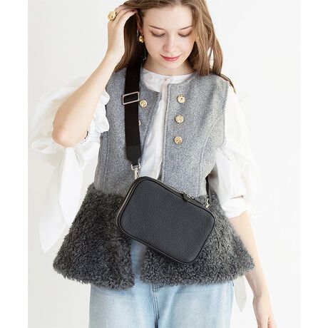 調整可能なストラップで肩掛けも斜め掛けも可能。革の風合いが上品さを添え、オンオフ問わず活躍する大人のショルダーです。