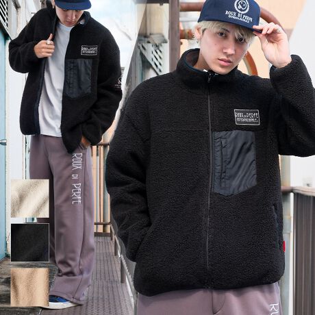 ジップラインとポケット部分のカラー配色がポイントのボアブルゾン。