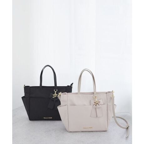 「F」ロゴ付きのリボンチャームがフェミニンな2WAYトートバッグ。