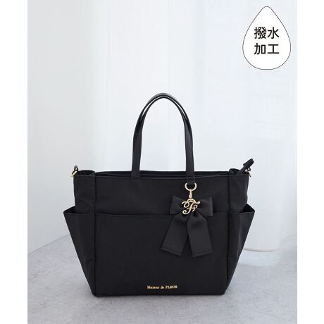「F」ロゴ付きのリボンチャームがフェミニンな2WAYトートバッグ。