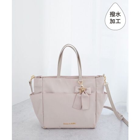 「F」ロゴ付きのリボンチャームがフェミニンな2WAYトートバッグ。