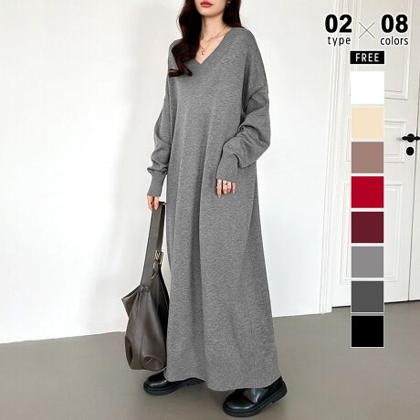 Vネックワンピース。