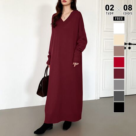 Vネックワンピース。