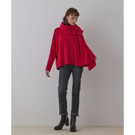 大判で軽く仕上げたストール。薄手の軽い編地にする事で大きく包み込むように纏ったり、アウターにくしゅっとさせて巻いたりと、様々な巻き方をお楽しみいただけるデザインです。お揃いでお作りしたウールオーバーニットトップ(0325443337)とレイヤードして楽しめる様、同じ色展開でお作りしました。