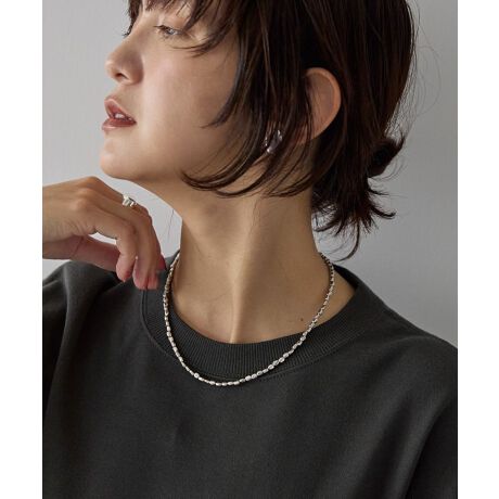艶感あるメタルビーズが連なった華やかで上品さのあるネックレス。シンプルなデザインでどんなスタイルにも合わせやすく、程よい抜け感とモードなアクセントを加えてくれるひと品です。お手持ちのネックレスと重ね付けしてアレンジを楽しめるのも嬉しいポイント。カジュアルからきれいめまで幅広いシーンで活躍してくれるおすすめのアイテムです。※モデル着用画像は、光の当たり具合で色味が違って見える場合がございます。※お使いのモニター環境によって商品の色味が違って見える場合がございます。