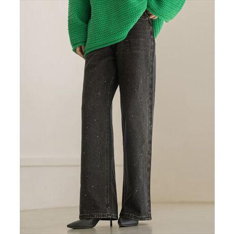 ラインストーン付きストレートデニム。