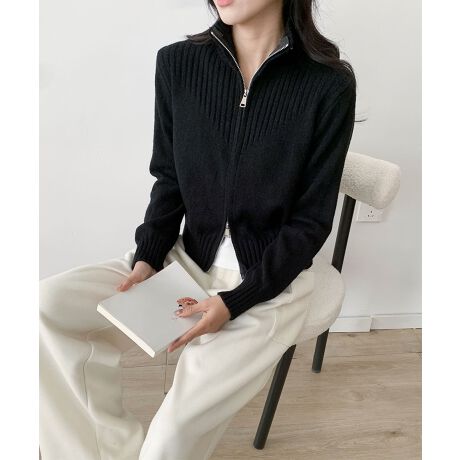 シンプルなトレンド感のあるハーフジップデザインが魅力のニットカーディガン。
