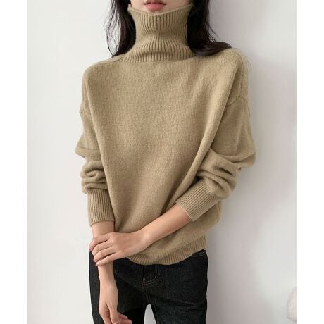 上品でシンプルなデザインのタートルネックニットプルオーバー。