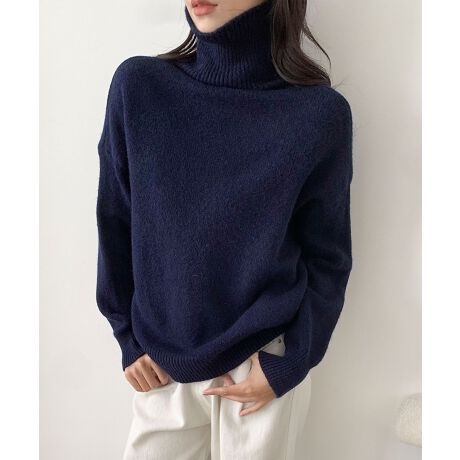 上品でシンプルなデザインのタートルネックニットプルオーバー。
