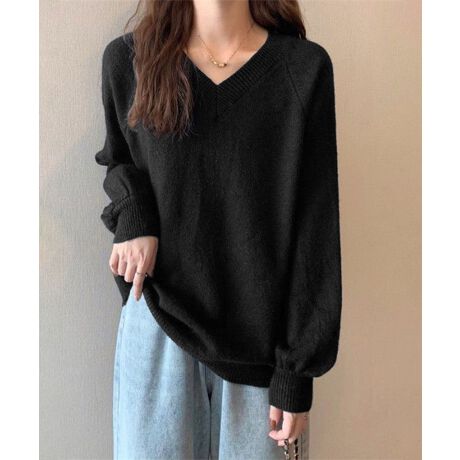 シンプルながらも女性らしさを引き立てるVネックニットプルオーバー。
