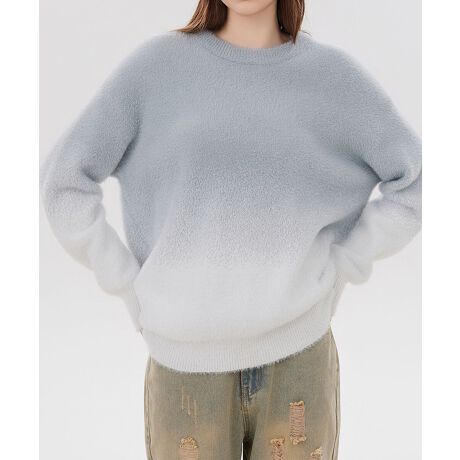 100%ポリエステルの素材で、しっかり保温してくれる暖かいクルーニット。インパクトのあるグラデーションデザインがアクセントとなり、着るだけでコーデの主役になれるアイテム。