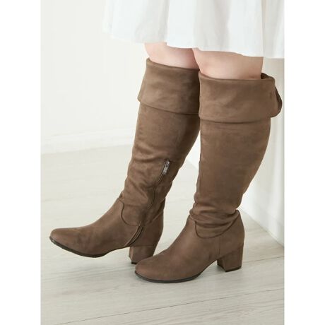 上品なスエード調素材で仕立てた2WAYニーハイブーツ。