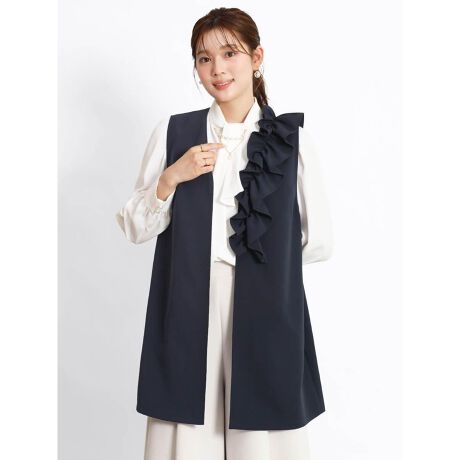 一枚できちんと感と華やかさを兼ね備えたフリルジレ。