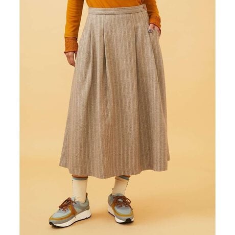秋冬のお出かけにぴったりなスカート。女性らしい自然なAラインシルエットです。前後のウエストにタックを施し、お腹周りはすっきり、裾にかけてきれいなフレアが出るのが特徴。サイドファスナーで着脱可能です。便利なポケット付き。