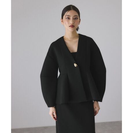 ペプラムラインやボリュームスリーブの立体的なフォルムが華やかなシルエットのカーディガン。