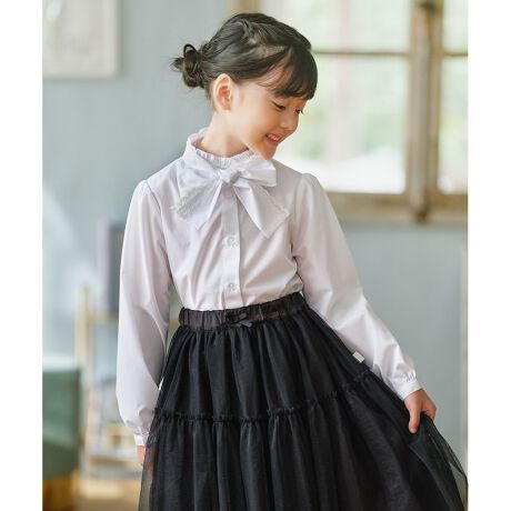 ■デザインボウタイ部分に繊細なレースをあしらった大きなリボンタイがアクセントとなり、上品で華やかな印象のブラウスです。