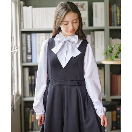 ■デザインボウタイ部分に繊細なレースをあしらった大きなリボンタイがアクセントとなり、上品で華やかな印象のブラウスです。