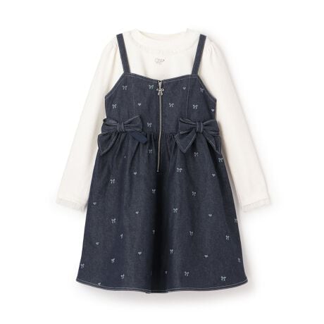 リボン刺しゅうキャミワンピース&長袖Tシャツセット