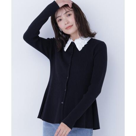 華やかなシーンに映える2wayカラーペプラムニット。立体感のある上質な生地を使用した襟が、顔まわりを明るく印象づけます。襟が取り外せるため、きちんと感のある装いからシンプルな着こなしまでアレンジ可能。自然にウエストラインを作るペプラムデザインで、女性らしいシルエットを叶えます。<素材>キレイな目面のリブ編みニットです。<詳細>仕様・前ボタン裏地・なし透け感・なし / 光沢・なし / 伸縮性・あり 生地の厚さ・普通※モデルの着用画像の場合、光の当たり具合により、実際の色味と異なって見えることがございます。色味は、商品単体の画像をご参照ください。