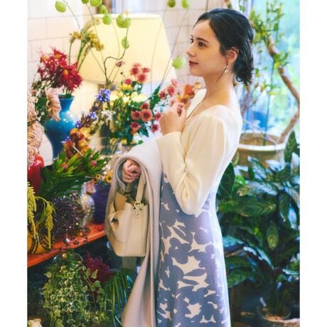 PROPORTIONで大人気アイテム!ジャガードニットワンピースに新色登場。大きめの花柄が目を引くニットワンピースは、ウエストを高い位置から切り替えているため、スタイルアップが狙えます。女性らしいシルエットを叶えながら、デイリーに着られるデザインです。根強い人気のブラック×ブラックと爽やかさと華やさを両立した新色ブルー×ホワイトの2色展開です。