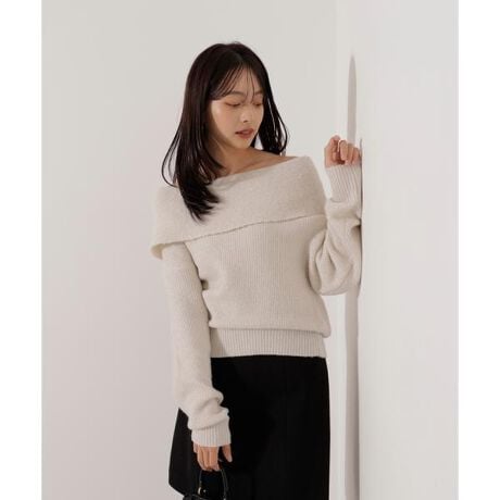 ラメ糸が入ってる華やかな雰囲気のオフショルニット。ヘルシーな肌見せを叶えるオフショルでも、片方の肩を下げてアシンメトリーなオフショルでも着られます。キレイめスカートやパンツ合わせはもちろん、デニム合わせで見せる大人カジュアルなスタイルもお勧めです。