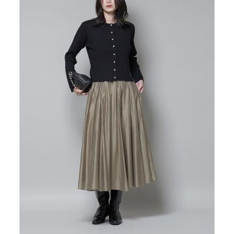光沢感のあるローン素材を使用したボリュームスカート。軽やかな素材感ながらも、たっぷり寄せたギャザーで立体感のある美しいシルエットを実現。冬のスタイリングに映える、上品でフェミニンな一枚です。