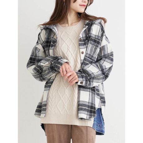 着るだけでトレンド感高まる♪フード付きチェックシャツ