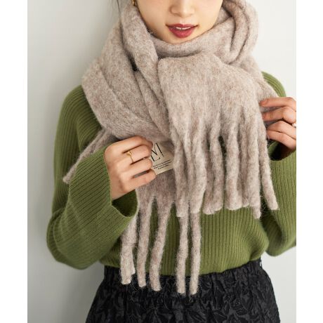 顔周りを華やかに彩る、ボリューム感たっぷりのチャンキーフリンジマフラー。