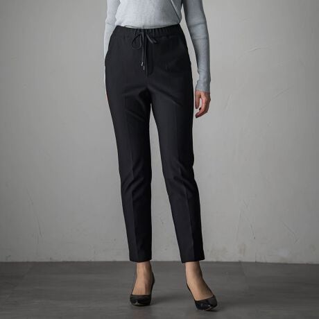 ジョグパンならではのリラックス感はありながら、すっきりとしたラインでカジュアルすぎず、大人のきれいめスタイルにもマッチします。