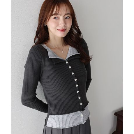 色違いのニットをレイヤードしたようなデザインがトレンドライクなニットトップス。