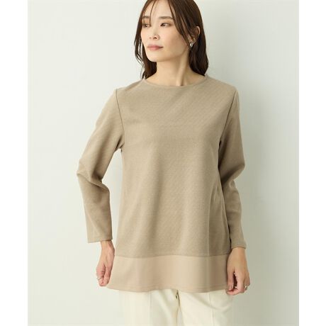 [型番:351675]華やかさを纏うラメジャカードドッキングチュニックラメジャカードのドッキングデザインが存在感を放つプルオーバーチュニック。前身頃と後身頃で異なる表情を楽しめ、一枚で華やかな印象に仕上がります。ゆったりとしたシルエットで体型カバーも叶い、デイリーからお出かけまで幅広く活躍するアイテムです。