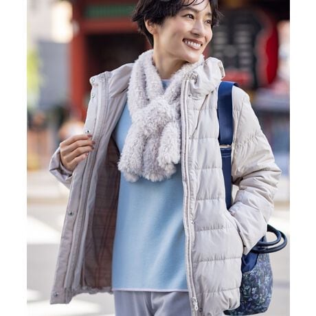 [型番:495623]軽やかで暖かくすっきり着こなせるショートダウン軽量で暖かく、着ぶくれしにくいすっきりシルエットのショートダウン。柔らかな素材感で動きやすく、デイリーに活躍します。裏地には上品なチェック柄をあしらい、さりげないおしゃれ心をプラス。パンツにもスカートにも合わせやすく、冬の定番アウターとして長く愛用できる一枚です。