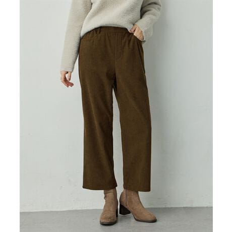 [型番:524314]柔らかな風合いで快適に穿けるコーデュロイパンツ毎年好評の柔らかなコーデュロイ素材を使用したパンツ。シーズンムードを高める優しい質感で、デイリーに取り入れやすい一本です。ウエストはゴム仕様で快適な穿き心地。カジュアルにもきれいめにも合わせやすく、秋冬のスタイリングに活躍します。