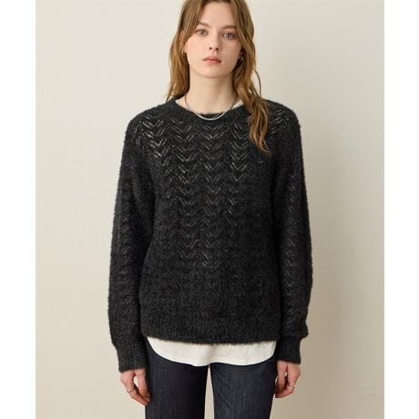 [型番:292149]ふんわりと包み込む軽やかなシャギーニットプルオーバーふわふわとしたエアリーな肌触りが心地よいシャギーニット。ゆったりとしたシルエットで体型カバーを叶えつつ、トレンドの抜け感スタイルを演出します。軽やかで上品な質感が魅力で、スカートにもパンツにも合わせやすい一枚です。