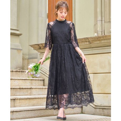 優美なレースとやや高めのネックがクラシカルな印象のワンピース。