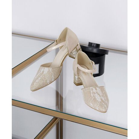 足元を華やかに演出してくれる、レース仕立てのパンプス。
