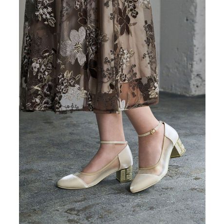 グリッター チャンキーヒール シアー パンプス 結婚式 パーティー お呼ばれ オケージョン