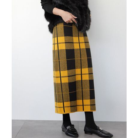 大柄チェックで抜け感のある着こなしができるニットタイトスカート。