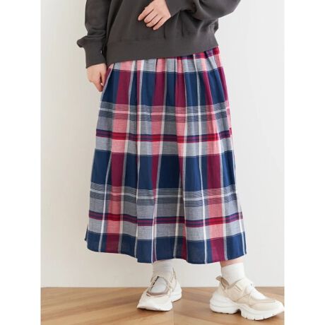 [型番:25410687171]クラシカルな先染めチェック柄が印象的なミディ丈スカート。程よく広がるシルエットで、動くたびに揺れるラインが上品な印象を演出します。ニットをインしてレトロガーリーに、スウェットと合わせてカジュアルにもおすすめ。足元はブーツやスニーカーなど合わせる靴次第で雰囲気を変えられます。Hare no hi/ハレノヒ