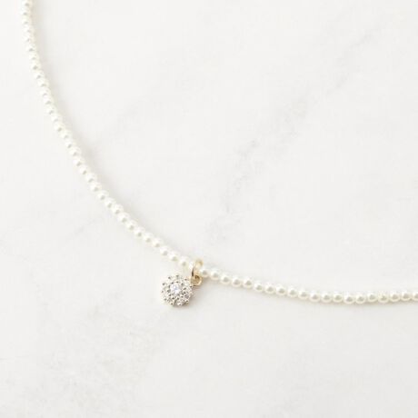 パール調ビーズに小さなビジュートップデザインが上品なネックレス。