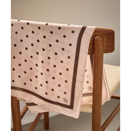 ・流行に左右されない定番のドット柄を、落ち着いた配色に落とし込んだスカーフ。