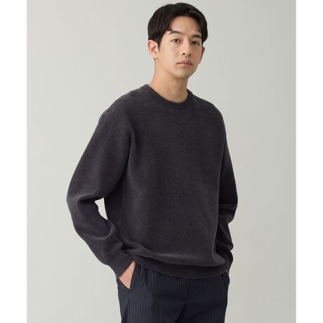 ■デザイン説明・程よくゆとりがあるクルーネックニット・しっかりとした肉感なのでボディラインを拾わずすっきりと着用していただけます