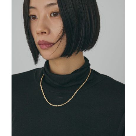 [型番:0H001223300]ツイストチェーンのシンプルなデザインネックレス。動くたびにきらりと輝く上品な光沢感が華やかさをプラスしてくれるユースフルなひと品です。デコルテ周りを綺麗に演出するコンパクトなショートタイプで様々なスタイリングにマッチ。シンプルで重ね付けにも重宝し、様々なシーンで活躍してくれる使い勝手の良いアイテムです。※モデル着用画像は、光の当たり具合で色味が違って見える場合がございます。※お使いのモニター環境によって商品の色味が違って見える場合がございます。