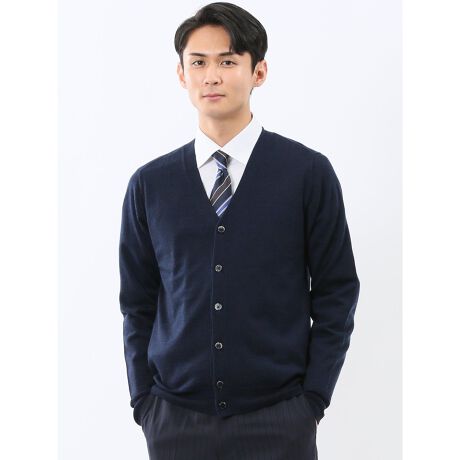 ウォッシャブル ウール100% Vネック ニットカーディガン