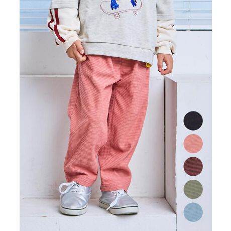 凹凸のあるワッフルコール素材が、表情豊かなシルエットをつくるイージーパンツ。